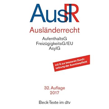 Mit ausführlichem Sachverzeichnis und einer Einführung von Dr. Klaus Dienelt Inhalt: AsylbewerberleistungsG, AsylG, AsylzuständigkeitsbestimmungsVO, AufenthaltsG, AufenthaltsVO, AusländerzentralregisterG, BeschäftigungsVO, FreizügigkeitsG/EU, Grundgesetz (Auszug), IntegrationskursVO, Schengener Durchführungsübereinkommen, Schengener Grenzkodex, Sozialrechtliche Vorschriften (Auszüge), StaatsangehörigkeitsG (Auszug), Visakodex, Visumpflicht und -befreiung, VO (EG) Zur 32. Auflage (Rechtsstand: 17. August 2017: Die Neuauflage enthält die Änderungen durch das Gesetz zur besseren Durchsetzung der Ausreisepflicht, das Gesetz zur Bekämpfung von Kinderehen, das Gesetz zur Umsetzung aufenthaltsrechtlicher Richtlinien der EU zur Arbeitsmigration und das Gesetz zur Änderung gebührenrechtlicher Regelungen im Aufenthaltsrecht.Broschiert=448 Seiten. Verlag=dtv Verlagsgesellschaft; Auflage: 20. (1. Mai 1984). Sprache=Deutsch. ISBN-10=3423055375. ISBN-13=978-3423055376. Größe und/oder Gewicht=12,5 x 3,2 x 19,3 cm. Durchschnittliche Kundenbewertung=3.6 von 5 Sternen 33 Kundenrezensionen. Amazon Bestseller-RangEuroparechtÖffentliches Recht=Nr. 5.260 in Bücher (Siehe Top 100 in Bücher) .zg_hrsr { margin: 0; padding: 0; list-style-type: none; } .zg_hrsr_item { margin: 0 0 0 10px; } .zg_hrsr_rank { display: inline-block; width: 80px; text-align: right; } Nr. 3 in Bücher > Fachbücher > Recht > Nr. 9 in Bücher > Fachbücher > Recht >.